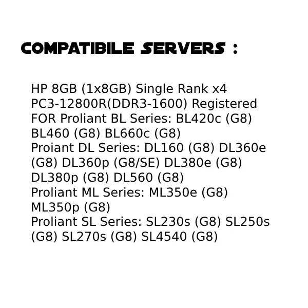 HPE ProLiant DL SeriesDL160 (Gen8), DL360e (Gen8), DL360p (Gen8/SE), DL380e (Gen8), DL380p (Gen8), DL560 (Gen8)